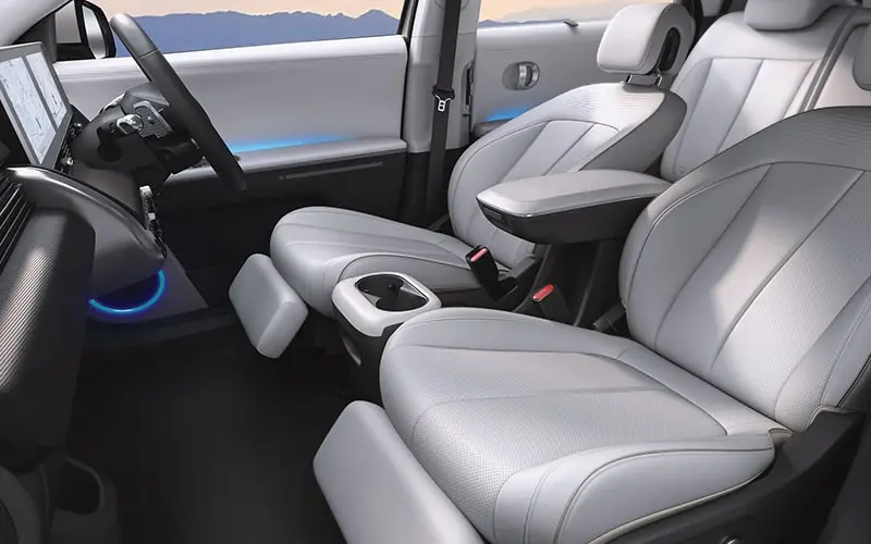 Technologically advanced, eco-friendly, and plugged into today’s customers’ needs, the IONIQ 5 is a masterful integration of digital and analog technologies. In the driver’s space, the past, present, and future have been brought together to create a harmoniously pleasant driving experience. The centerpiece of the sleek modular dashboard is the extra wide integrated display, which combines a 12.25” full-touch infotainment screen and a 12.25” digital cluster for a high-tech look